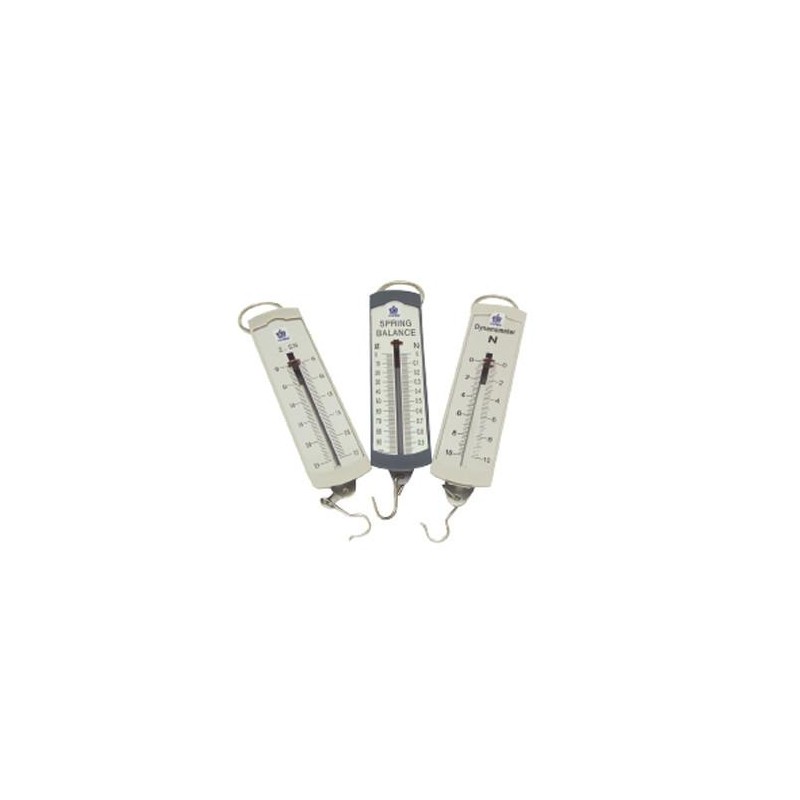El dinamómetro es un aparato que aplica la Ley de Hooke para medir la fuerza producida por la gravedad o el peso de un objeto, funciona con un resorte que está graduado de acuerdo a su límite de elasticidad para indicar en una escala la medida directa del peso de cualquier cuerpo, contiene escalas desde 1 hasta 10 Newtons (N), SIU.